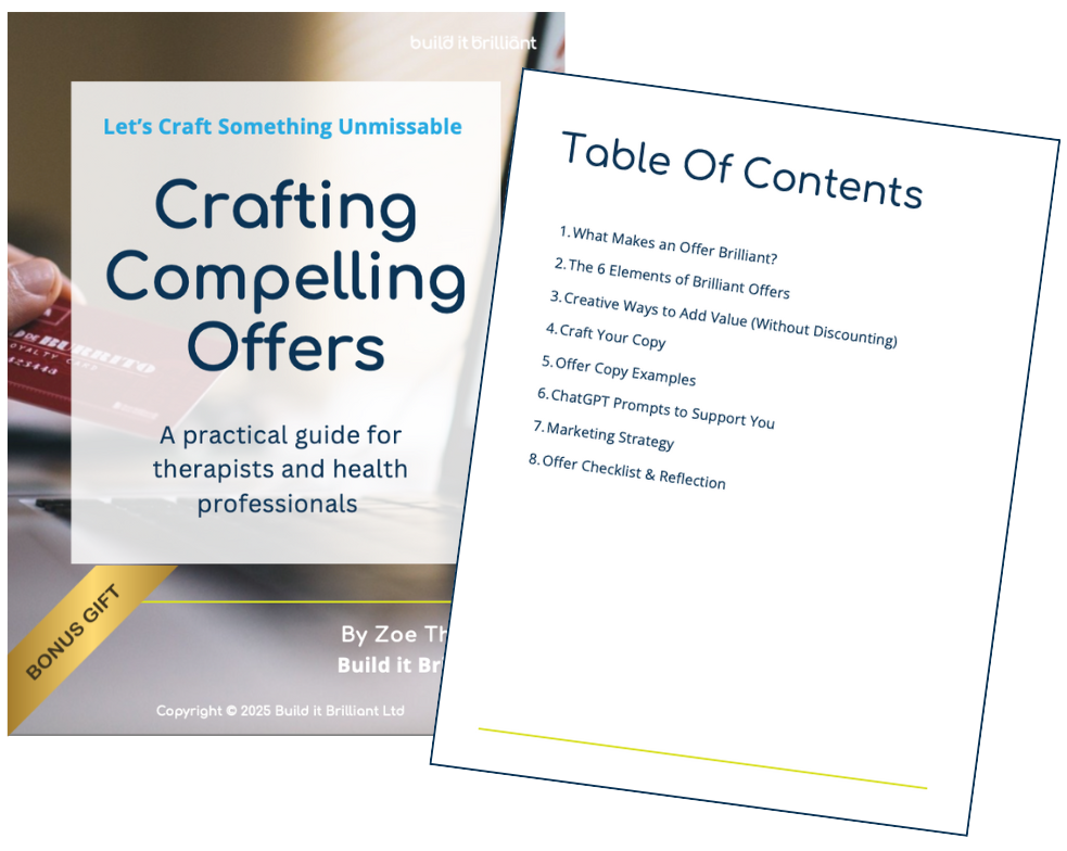 This guide is the result of everything I’ve learned on that journey — distilled into a simple, step-by-step process to help therapists and health professionals like you craft offers that are clear, compelling, and sustainable.